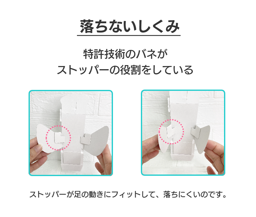 裏側には特許技術のバネがストッパーの役割になり、デリケートゾーンに挟み手を放しても外側に力が働き、内ももに固定する仕組みとなっております。